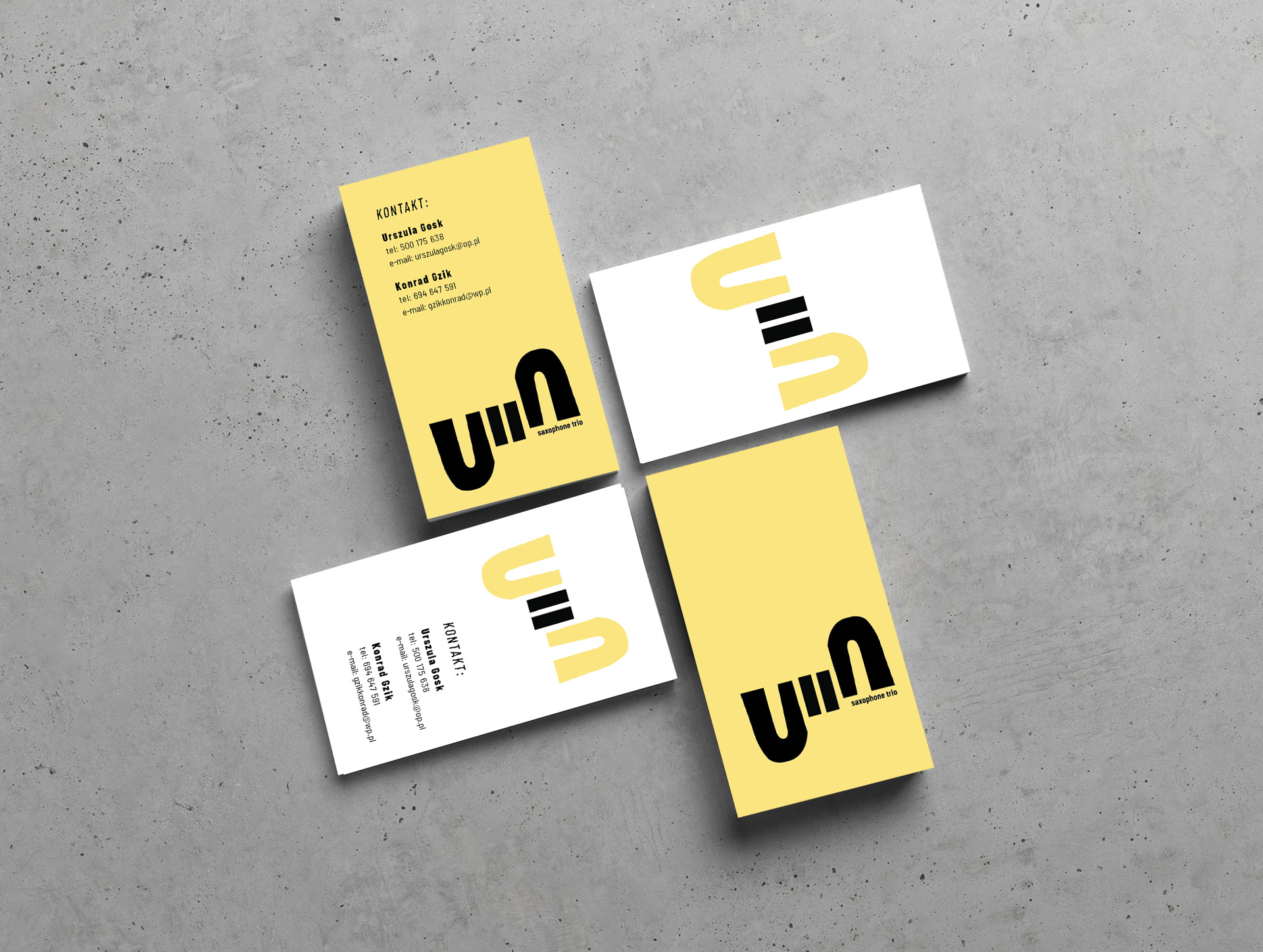 Projekt wizytówek dla zespołu muzycznego ulla saxophone trio, 2015 Warszawa