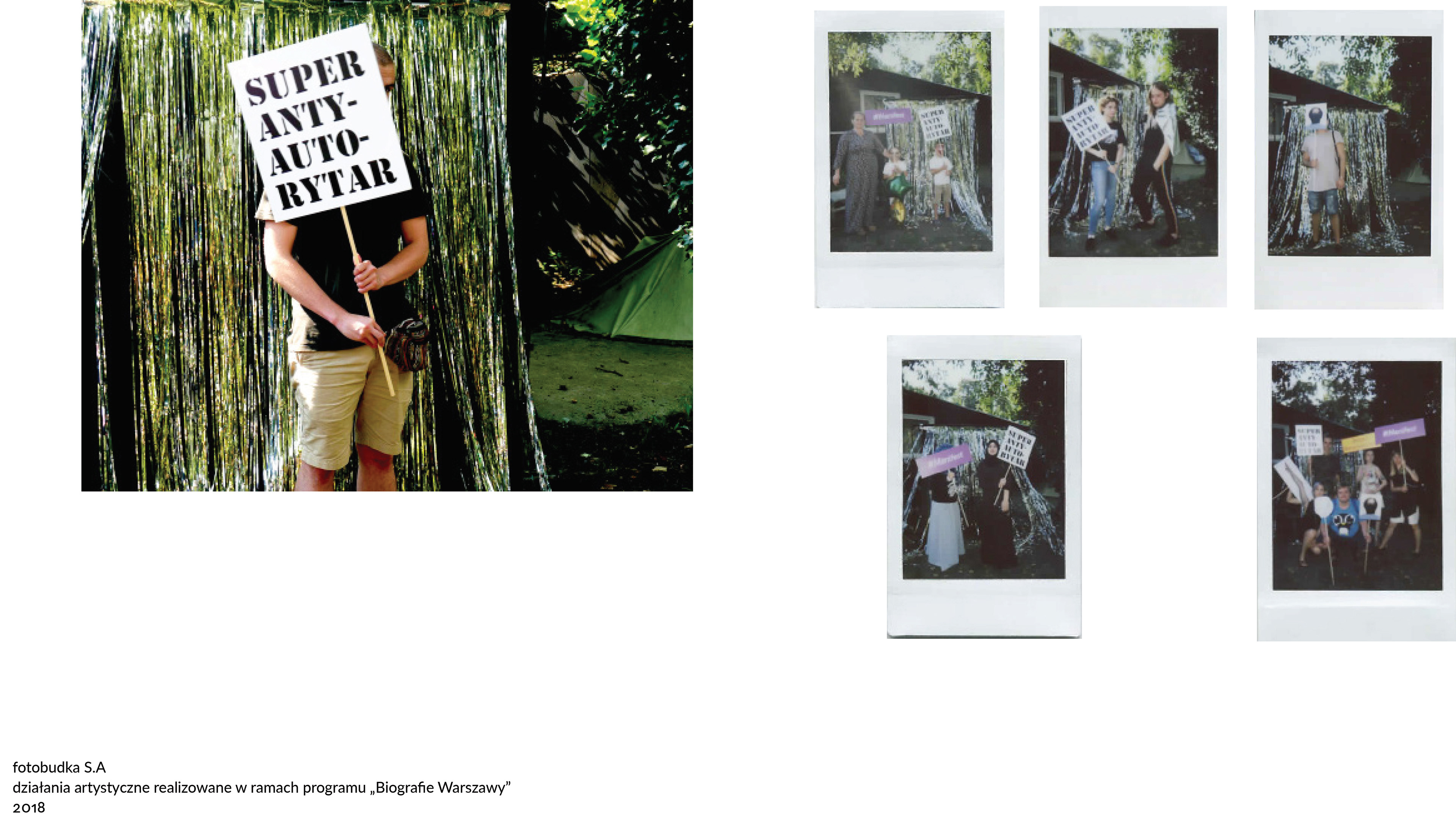 Projekt SA. (Super Antyatutorytar ) to projekt wizualny, który ma na celu wykreowanie super bohatera przeciwnego z założenia przekonaniom osobowości autorytarnej. Powstał on przez demokratyczny wybór zaprojektowanych przeze mnie części ciała od rąk, nóg, głowy i tułowia (często inspirowanych wadami genetycznymi ciała). Moduły przedstawione są w albumach fotograficznych na stronie facebookowej superantyautorytara (https://www.facebook.com/superantyautorytar/), które wybierane są przez największą ilość lajków. Wytworzona postać staję się dzięki temu niejednolita wizualnie, podkreślająca tym samym różnorodność. Tworzony awatar jest symbolem pokoju, wolności, tolerancji. Super antyautorytar przeciwstawi się osobowości, która wykazuje silne predyspozycje do akceptowania i podzielania antydemokratycznych przekonań, uwidaczniających się w konserwatywmych poglądach i postawach, a także w postrzeganiu świata przez pryzmat stereotypów i schematycznego „sztywnego” rozumowania. Gotowe zdjęcie stworzonego na stronie facebookowej awatara staje się szablonem graffitti, wlepkiem. Każdy odwiedzający stronę może wykorzystać powstały projekt do przedstawienia w kontekście przestrzeni publicznej. Zależy mi na podkreślaniu zasięgu owego superbohatera, który jest między światem realnym a internetowym. Obecność awataru (symbolu równości) zarówno w internecie jak i w przestrzeni publicznej stałaby się sprzeciwem i zarazem komentarzem do zjawisk takich jak szerzenie stereotypów, agresji i braku tolerancji. Demokratycznie wybrany S.A został przedstawiony 16.06.2016 w postaci hologramu w skrzynce przeciwpożarowej znajdującej się w nieczynnej Fabryce Samochodów Osobowych (FSO) w Warszawie podczas wystawy podyplomowej.